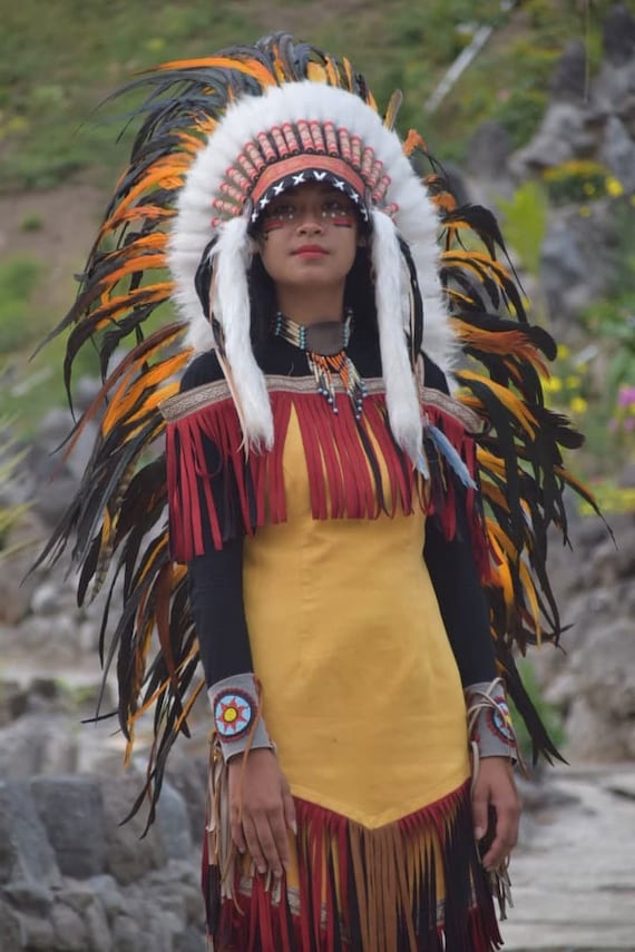 Feathered Native American Headdress Costumes. Roma upscale womens indian chief romper costume. The most common women indian costume material is metal. Сostumy.com has a range of benefits to consumers from finding the minimum price or the best deals to save money. Check out our women indian costume selection for the very best in unique or custom, handmade pieces from our costumes shops. Woman indian chief costume 2020. A wide variety of indian chief costumes options are available to you, such as supply type, material, and product type. $59 | handmade chief indian headdress native american costume war bonnet #handmade #hatsheadwear. Alibaba.com offers 828 indian chief costumes products. Shop now top popular indian chief costume women with fast and free shipping to united states, uk, canada, europe, and australia on сostumy comparison shopping engine. There are 3,296 women indian costume for sale on etsy, and they cost $54.68 on average. Adults native american indian costume pattern for men & women view a; Top pants breech cloth, b: This beautiful indian style headdress is handmade and features stunning and 100% authentic feathers as well as stylish native american style beadwork in the front. Find great deals on ebay for indian chief costumes. The beads on the forehead can vary in color and design as we try to keep every headdress unique.
